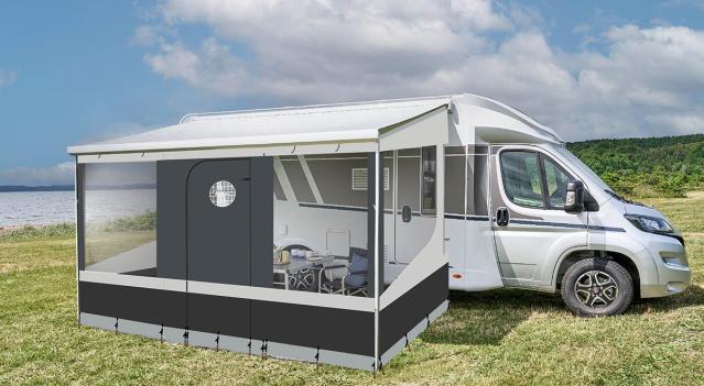 Skab et hyggeligt uderum foran din campingvogn, autocamper eller van med Wind Side, som nemt monteres på din markise for ekstra læ og komfort.