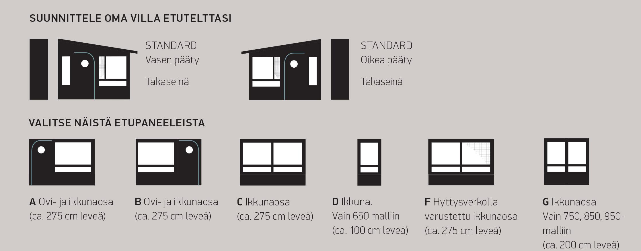 VILLA on saatavana kahtena syvyytenä ja viitenä pituutena, ja se voidaan koota eri moduuleista. Monien vaihtoehtojen ansiosta voit suunnitella oman unelma-Villasi: