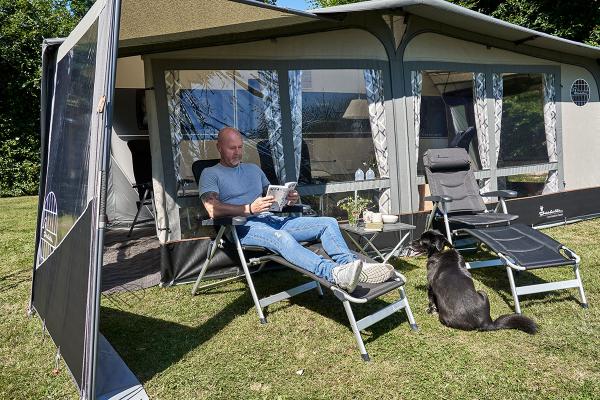 Imaginez-vous assis à l'abri devant l'entrée de votre auvent, profitant de la vue et de l'ambiance du camping. Avec le Cosy Corner, vous disposez d'un espace douillet et protégé où vous pouvez boire votre café du matin, lire un livre ou simplement vous détendre à l'abri du vent. Le Cosy Corner s'installe rapidement en utilisant le jonc cousu et le profilé de raccordement fourni. Il peut être placé sur le côté droit ou gauche de l'entrée de votre auvent - là où cela vous convient le mieux.