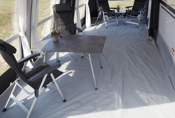Sol PVC résistant conçu pour Isabella Air Cirrus North 400. Le sol se fixe facilement à l'aide de Velcro et remonte légèrement sur les côtés de l'auvent afin d'éviter que l'eau ne pénètre.