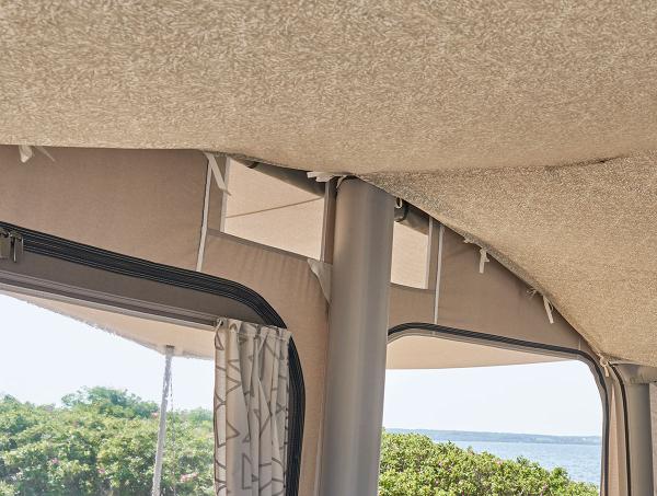 Aspirer ou brosser l’auvent quand il est sec. Par la suite, essuyer avec un chiffon humide.