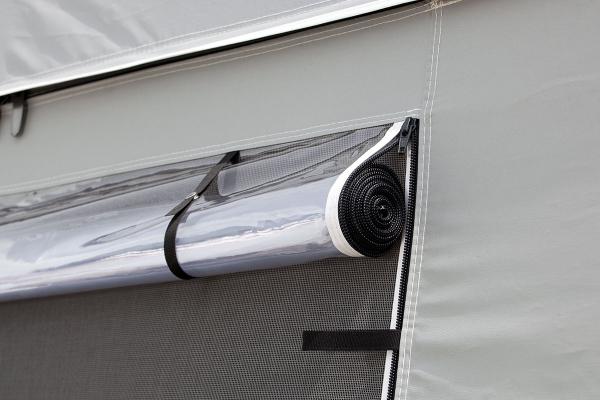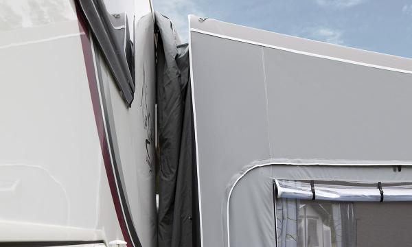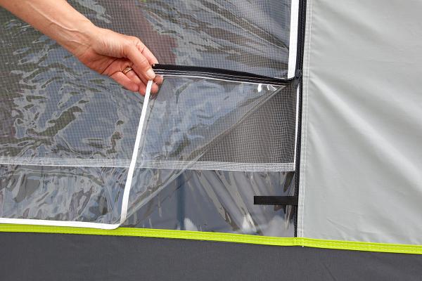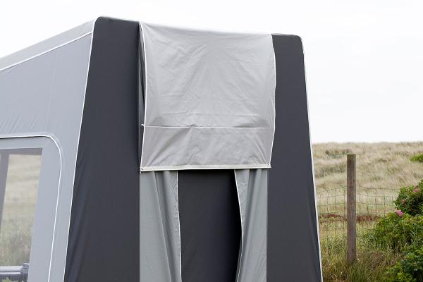 Partez avec votre camping-car et laissez le Freestander Cumulus sur place. Système astucieux de raccordement au véhicule avec deux fermetures à glissière verticales et sas. Porte des deux côtés. Accès au véhicule couvert par l’intermédiaire d’un tunnel flexible. Panneaux avant et panneaux de côté amovibles et rabattables. Fenêtre moustiquaire avec volet cristal sur le côté droit.
