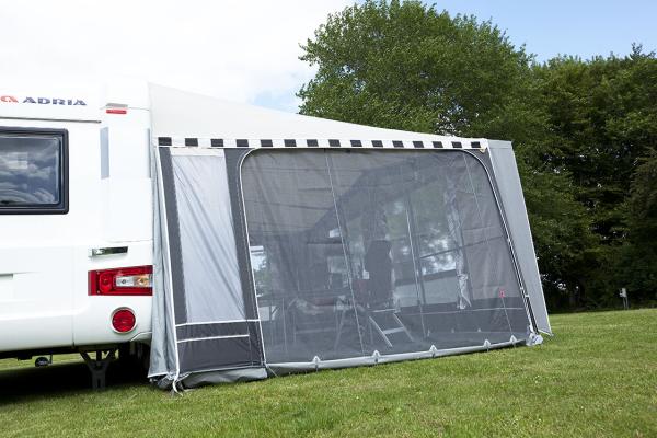 Le côté en filet à installer sur la faîtière latérale permet de retirer l’ensemble du panneau de côté et de le remplacer par un côté moustiquaire complet. Ceci est surtout avantageux dans un climat chaud où une bonne ventilation est un «must».