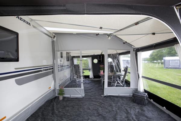 Pour utiliser toute la largeur de l’auvent, le panneau intérieur peut être supprimé. Il est possible d’installer des rideaux directement sur la paroi en utilisant des clips pour rideaux (en option).