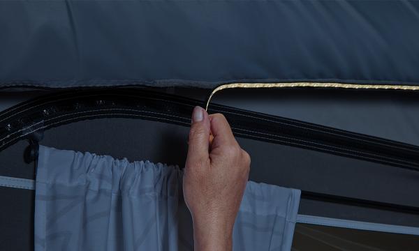 Les bandeaux lumineux s’installent avec du ruban adhésif sur les tubes à air de votre auvent Ventura Air ou avec de la bande adhésive sur l’armature de votre tente ou auvent. Combinez les bandeaux lumineux LED avec une rallonge ou un cordon en T et adaptez ainsi l’éclairage à vos besoins personnels. Les bandeaux lumineux peuvent éclairer la tente ou l’auvent totalement ou bien la lumière peut être atténuée avec un variateur LED Isabella qui crée un éclairage d’ambiance agréable.