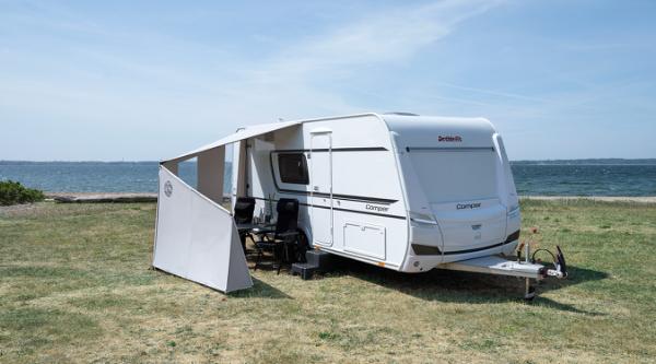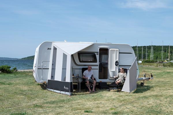 Créez un coin confortable et abrité avec le Cosy Corner Levo. Parfait pour un moment de tranquillité à l'ombre ou une pause café relaxante devant votre caravane, camping-car ou van. Le Cosy Corner Levo est conçu pour être extrêmement facile à monter : il tient avec un seul piquet et peut être déplacé le long du rail de la caravane ou du rail du store pour un positionnement optimal.