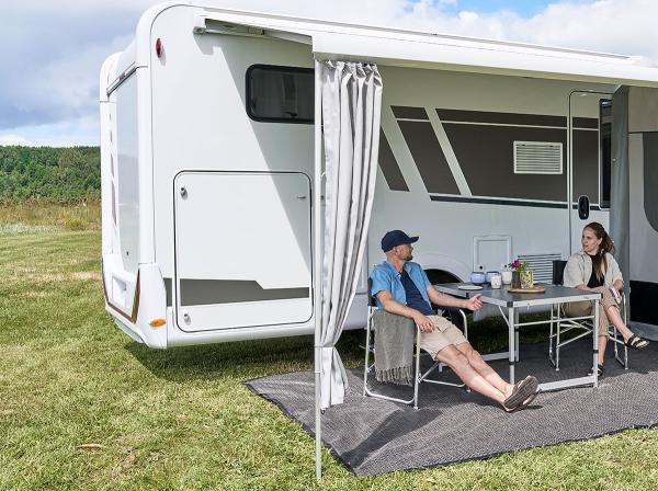 Le Shade Curtain se monte facilement sur le rail d'auvent et peut être facilement déplacé dans le rail d'auvent à l'endroit où vous le souhaitez. Lorsque le vent se lève, vous pouvez fixer le rideau avec des Sardines pour l'empêcher de battre. Le rideau est fabriqué en polyester tissé, ce qui est le gage d'une utilisation durable. Le design élégant s'accorde parfaitement avec les autres équipements Isabella.