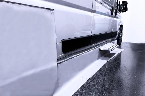 Évitez les courants d'air et le froid sous votre fourgon grâce à cette jupe de caisse fonctionnelle et durable. Elle assure une étanchéité efficace entre les roues pour un espace de vie plus confortable, sans courants d'air sous votre marquise.