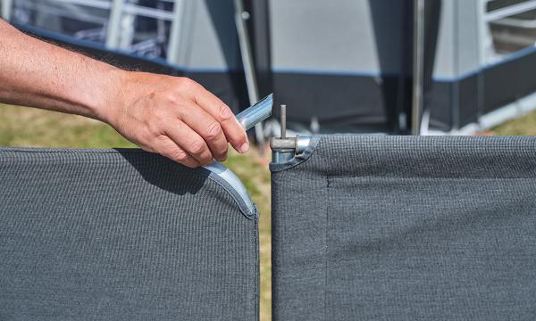 Le portillon est un accessoire pratique pour le pare-vent Mega Granite. Il permet d'accéder facilement à votre espace de camping fermé et vous garantit une entrée et une sortie faciles sans avoir à déplacer le pare-vent.