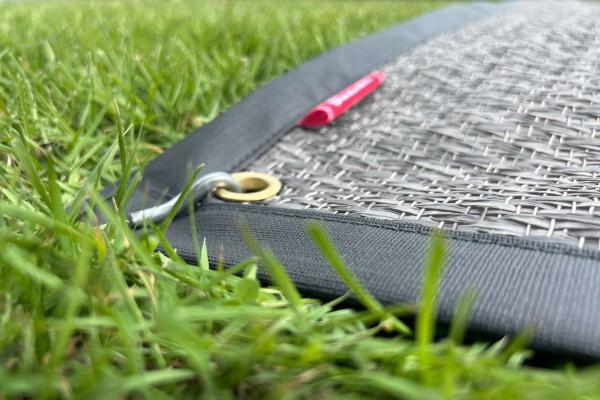 Le tapis Isabella pour store banne présente une très belle finition avec un ruban de bordure cousu sur les bords et des œillets de fixation pratiques dans chaque coin pour une finition soignée et une durabilité accrue.