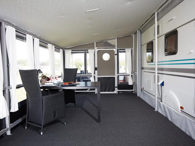 La paroi arrière du VILLA peut être ajustée pour s'adapter aux caravanes de toutes tailles. Ceci est la garantie d'un ajustement serré et précis et vous permet d'utiliser l'auvent en pose libre sans caravane.