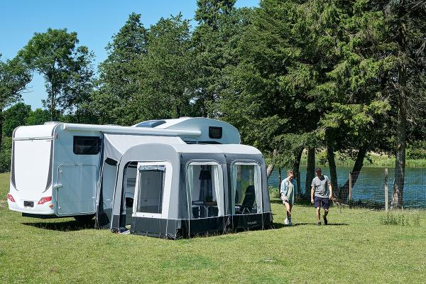 Ventura AIR Vita est un auvent gonflable autoportant qui peut rester debout lorsque vous partez avec votre camping-car ou votre campervan. Grâce au système d'air intelligent où tous les boudins gonflables sont reliés, vous pouvez le gonfler rapidement à partir d'une seule valve, minimiser le risque de fuites et profiter d'un auvent qui reste stable même lorsque le temps change. Pour monter l'auvent sur le véhicule, choisissez un tunnel de la bonne hauteur pour votre camping-car ou votre campervan
