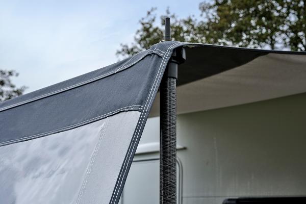 Shade est tout ce qu’il vous faut pour les vacances d’été ou les week-ends ensoleillés. Grâce aux armatures légères en CarbonX et à une toile légère, la solette s’installe en un rien de temps. Shade 300 ne pèse que 5,6 kg, et Shade 400 seulement 7,9 kg – offrant suffisamment de place pour vélos, barbecue ou meubles de camping.