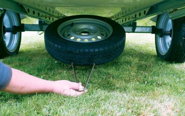 Roue de secours avec support. Se monte facilement sous le cadre.