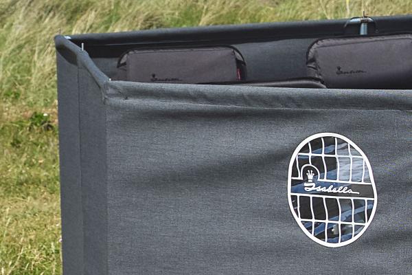 Le pare-vent est fabriqué dans le même tissu Isacryl 295 g/m² grand teint que nos auvents Isabella. Ce matériau respirant conserve sa couleur à la lumière du soleil et garantit une longue durée de vie. L'armature Zinox MegaFrame extra-robuste assure une construction solide qui reste stable, même par vent fort. Avec un poids de 17,22 kg, vous disposez d'un pare-vent qui résiste même aux conditions météorologiques difficiles.