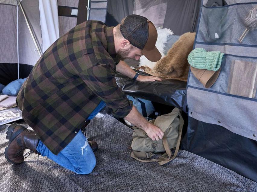 Le Camp-let Earth regorge d'options de rangement pratiques qui vous permettent de ranger plus facilement les petits et les grands objets. Une housse de rangement avec des poches est montée devant les cabines de couchage pour tous vos petits objets.