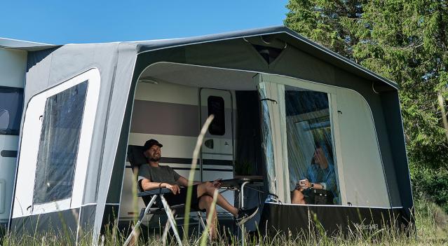 Veranda gonfiabile per camper flessibile in due dimensioni. La scelta perfetta quando hai bisogno di una soluzione semplice per la tua vacanza in campeggio.