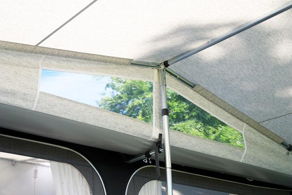 Solseilet har en unik konstruksjon i form av et bakpanel, noe som sikrer en god høyde på solseilet, selv om det er montert på Penta- forteltet under overhenget. For å skape godt lysinnfall under solseilet, er bakpanelet utstyrt med to toppvinduer.