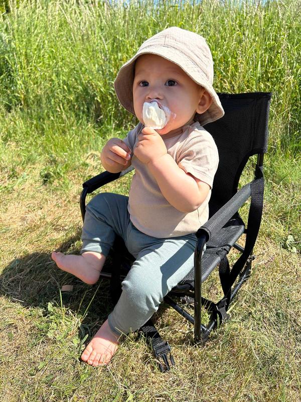 Den perfekte sammenleggbare stolen for de små campingturistene. Ministolen kan festes til alle Isabellas stoler ved hjelp av de medfølgende stroppene. Det avtakbare puteinnlegget gjør at stolen kan brukes av barn fra ca. 8 måneder (eller når barnet kan sitte selv) og opp til ca. 5 år. Puteinnlegget kan vaskes i vaskemaskin.