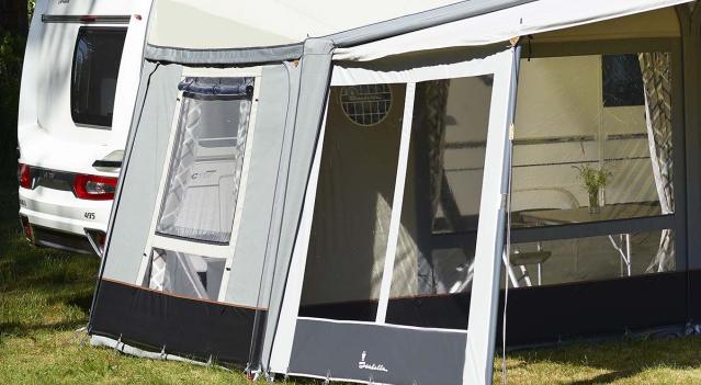Tillval: Om du vill ha extra lä och avskärmning kan du köpa till en läsida (261000311) till Eclipse soltaket. Läsidan har två stora fönster och kan monteras på vänster eller höger sida. Om du använder läsidan och Eclipse soltaket direkt på husvagnen (utan förtält) behöver du även en Eclipse Adaptor (261000416). Det är ett litet sidostycke som monteras ovanför läsidan och säkerställer en tät anslutning mellan soltaket och husvagnen.