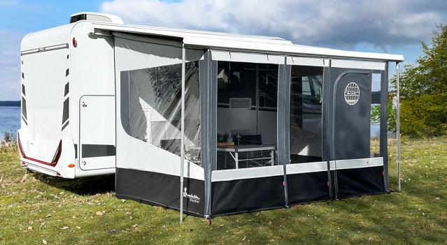 Build your own wind out canopy awning – combine sides and fronts as you like. A flexible solution that gives you shelter, privacy and comfort.