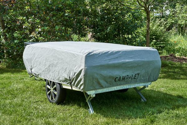 La funda de invierno protege tu Camp-let del polvo y la suciedad cuando la guardas en los meses fríos. Cubre toda la Camp-let y es muy útil para guardarla en interior o bajo techo. Está hecha con un material perforado y transpirable que la protege del polvo y la humedad sin que se acumule condensación por debajo. Es muy ligera, ocupa poco y se coloca fácil con las correas incluidas.