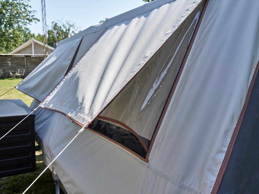 El Camp-let North está diseñado con ventanas y ventilación alrededor de toda la tienda, lo que proporciona buenas opciones de ventilación. Todas las ventanas tienen mosquiteras integradas y elegantes cortinas de color claro.