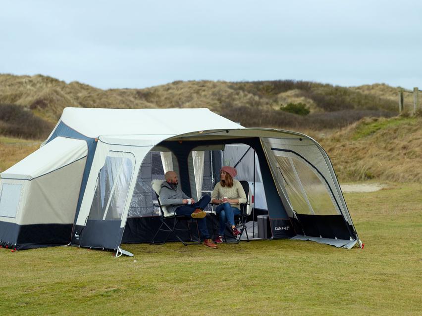 El Camp-let North ofrece infinitas posibilidades de personalización. Con él diseño modular y un sistema de cremalleras fácil de usar, puedes añadir fácilmente módulos adicionales para adaptarlos a tus necesidades. Si quieres un anexo para dormir más, un amplio toldo o simplemente más espacio para vivir, puedes ampliar fácilmente tu Camp-let North.