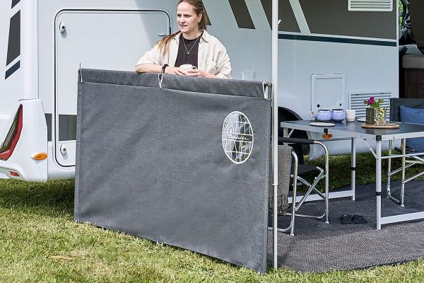 Crea un campeggio elegante e armonioso con il frangivento grigio 2 lati di Isabella. Con il suo semplice design a tinta unita e l'oblò Isabella, è ideale per caravan, camper e furgoni.
