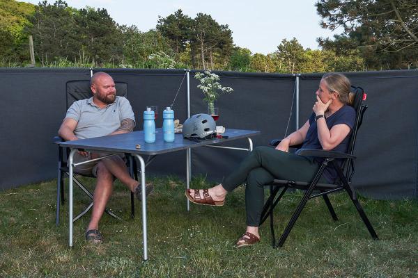 Lo Stabilo System Mega assicura che il frangivento rimanga stabile e sicuro al suolo. Il sistema consente anche di estendere facilmente il frangivento, poiché ogni piastra Stabilo ha lo spazio per montare due pali. Le piastre sono a livello del terreno, quindi puoi tagliare l'erba direttamente sopra di esse senza rimuovere i picchetti: basta rimuovere il frangivento stesso. È incluso un attrezzo speciale per martellare i picchetti, in modo da evitare di danneggiare il collare dei picchetti.