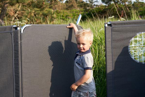 Il frangivento Mega Granite è progettato per installazioni permanenti che richiedono una soluzione solida e stabile. Con il connettore superiore incluso, puoi collegare facilmente diversi frangivento Mega Granite per creare un recinto completo che offre riparo e privacy, senza spazi vuoti nella parte superiore.