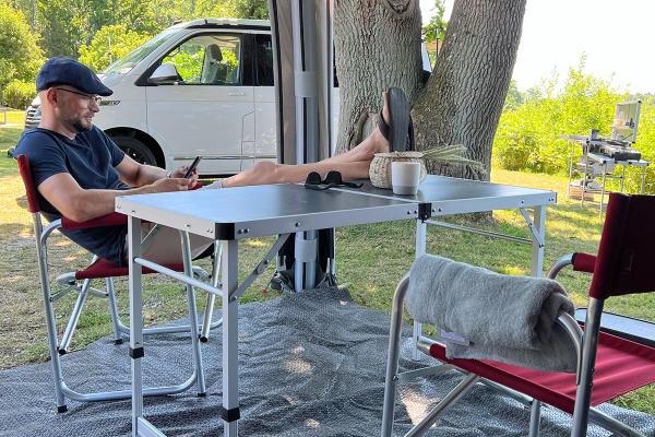 Ontdek de nieuwe en verbeterde Isabella regisseursstoel, nu geleverd met een afneembaar zijtafeltje. Dit slimme tafeltje kan aan beide zijden van de stoel worden geplaatst en draagt tot 5 kg – ideaal voor je drankjes, snacks en zonnebril.