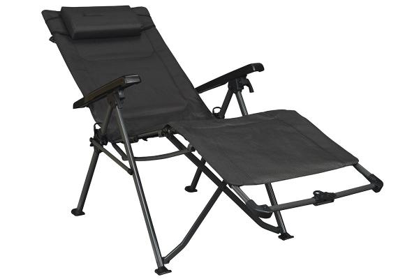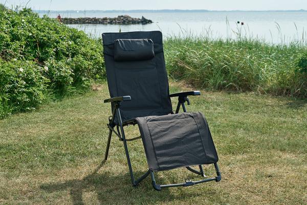 Ontspan en leg je benen omhoog in de ultieme Freja relaxstoel. Dankzij het ergonomische ontwerp, de afneembare hoofdsteun en talloze verstelmogelijkheden is deze campingstoel ontworpen voor maximaal comfort tijdens de vakantie.