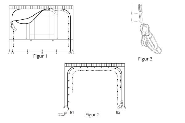 - Skyv skyveren helt til motsatt endestopp (b1), og trekk den deretter ut. Sett den nye skyveren på glidelåsen og trekk den tilbake til startposisjonen (b2) (se Figur 2).