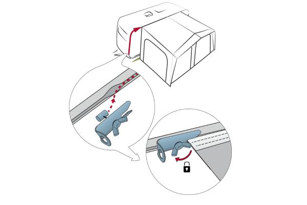 Med Safe Lock får du en enkel og effektiv løsning for å hindre at forteltet ditt sklir langs teltskinnen – for eksempel i kraftig vind. Safe Lock monteres direkte i teltskinnen på begge sider av forteltet og fungerer som en fysisk stopp som holder teltet trygt på plass. Safe Lock er laget av rustfritt stål og kan trygt stå igjen på campingvognen – selv under kjøring og i fuktig vær.