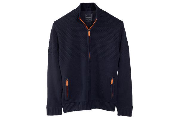 - Color: Dark blue with orange zip