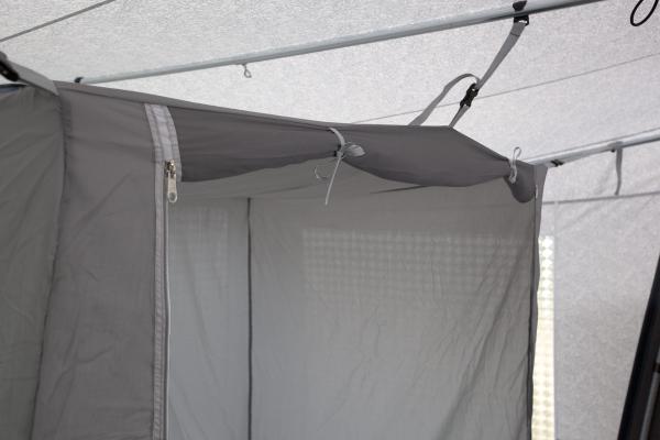 Doskonała komora sypialna dla dzieci lub gości. Wykonano ją z ciemnoszarego, nieprzepuszczającego światła materiału. Aby warunki we wnętrzu namiotu sypialnego były jak najlepsze, jest wyposażony w moskitierę i podłogę z PVC. Doskonała wentylacja i ograniczone do minimum przenikanie wilgoci z podłoża.