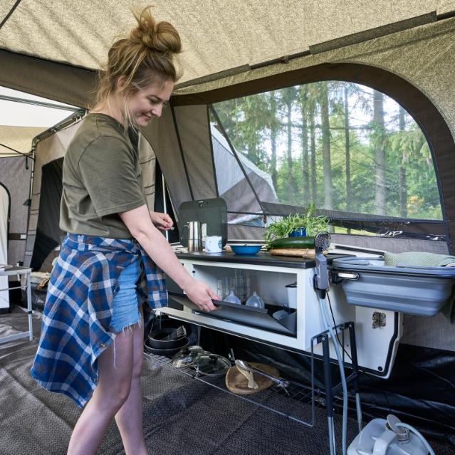 Możesz dostosować swój namiot Camp-let do swoich potrzeb. Chcesz mieć więcej miejsca do spania, zadaszoną kuchnię na świeżym powietrzu lub bagażnik na rowery zamontowany na pokrywie? Możliwości są nieograniczone i możesz dostosować swój namiot Camp-let, aby idealnie pasował do Twojego stylu biwakowania.