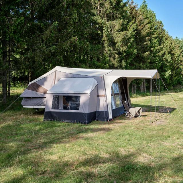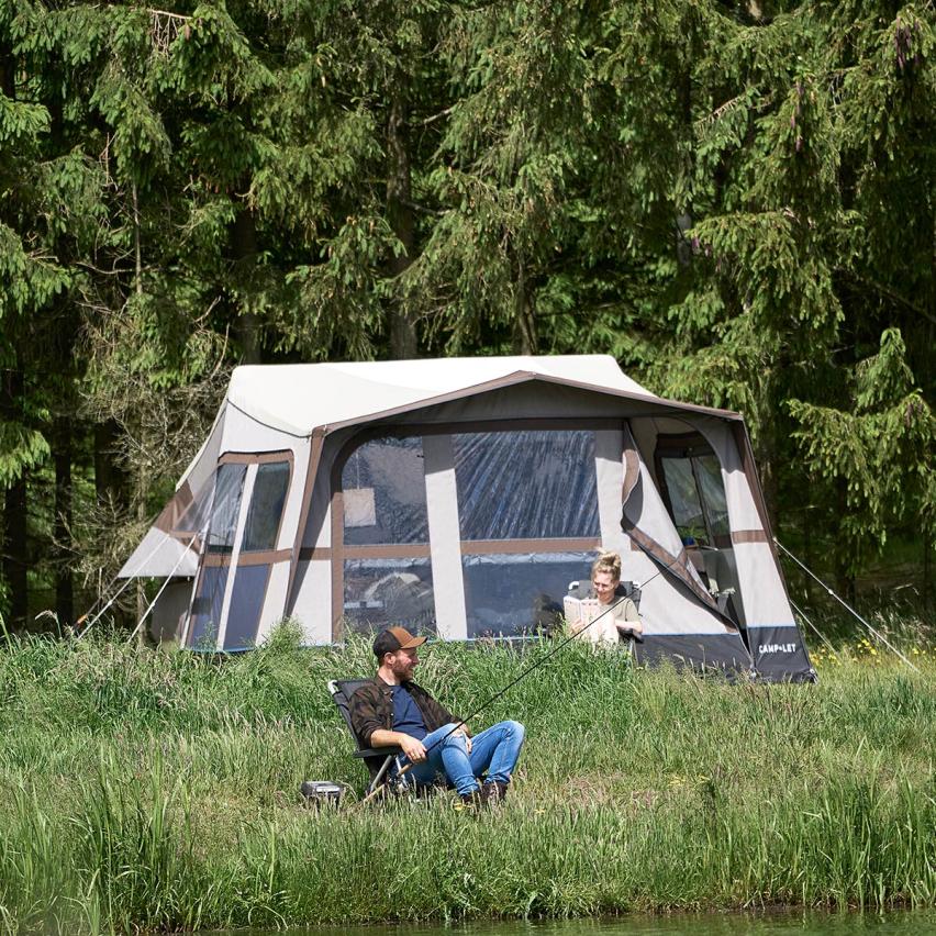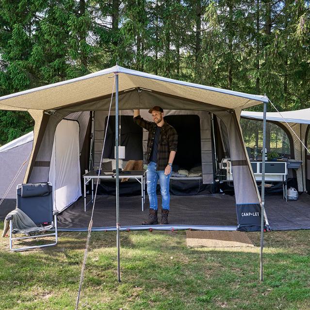 Camp-let jest wygodniejszy niż tradycyjny namiot i bardziej elastyczny niż przyczepa kempingowa. Ma przestronne kabiny sypialne, część dzienną z wysokimi sufitami i opcjonalne dodatki, takie jak aneks i kuchnia. Inteligentny mechanizm rozkładania ułatwia rozbijanie namiotu – zarówno przedsionek, jak i kabina sypialna rozkładają się jednym ruchem. W ciągu zaledwie 15-20 minut możesz cieszyć się wspaniałym wypoczynkiem na świeżym powietrzu.
