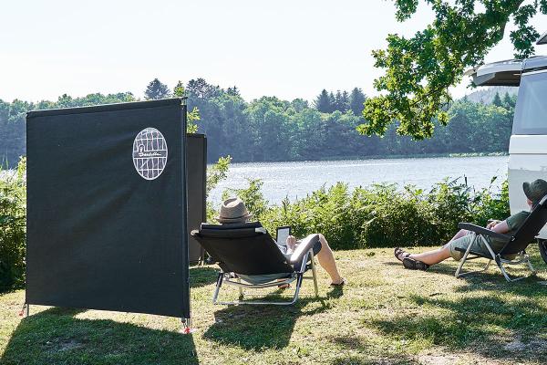 3-skrzydłowy parawan Granit zapewnia schronienie i prywatność, jednocześnie umożliwiając widok na kemping. Dzięki wysokości 130 cm skutecznie chroni przed wiatrem, nie zasłaniając całkowicie otoczenia. Elegancka szara kolorystyka idealnie pasuje do większości przyczep kempingowych.